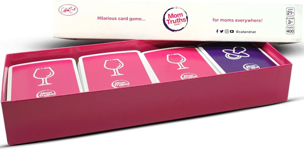 From famed Influencer’s Cat and Nat, this #momtruths adult card game is hilariously thought out and will give a group of moms a fun filled night