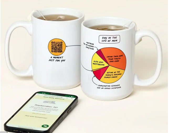 Being a mom means wearing all the hats. This clever interactive mug captures the beautiful chaos of a day in the life of Mom. Scanning the QR code on the mug reveals a daily dose of mom-mentum—think heartfelt encouragement, celebrity mom quotes, LOL-worthy snark, and real truths from the motherhood front lines. Scan the QR code for one of 365 daily messages made just for moms—encouraging, hilarious, or just so true. Add a coffee gift card as a bonus.