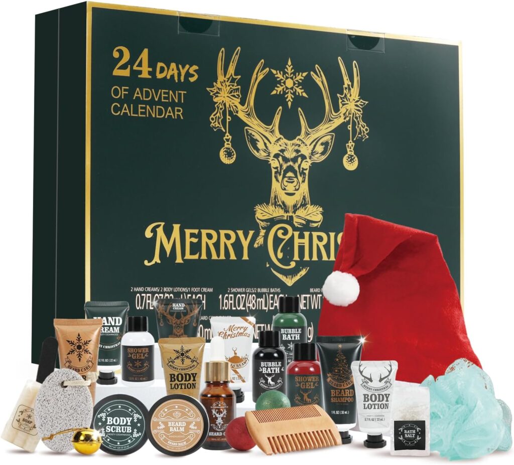 24 sample-size gifts for beard and skincare! Great idea for someone who is travelling home for the holidays!